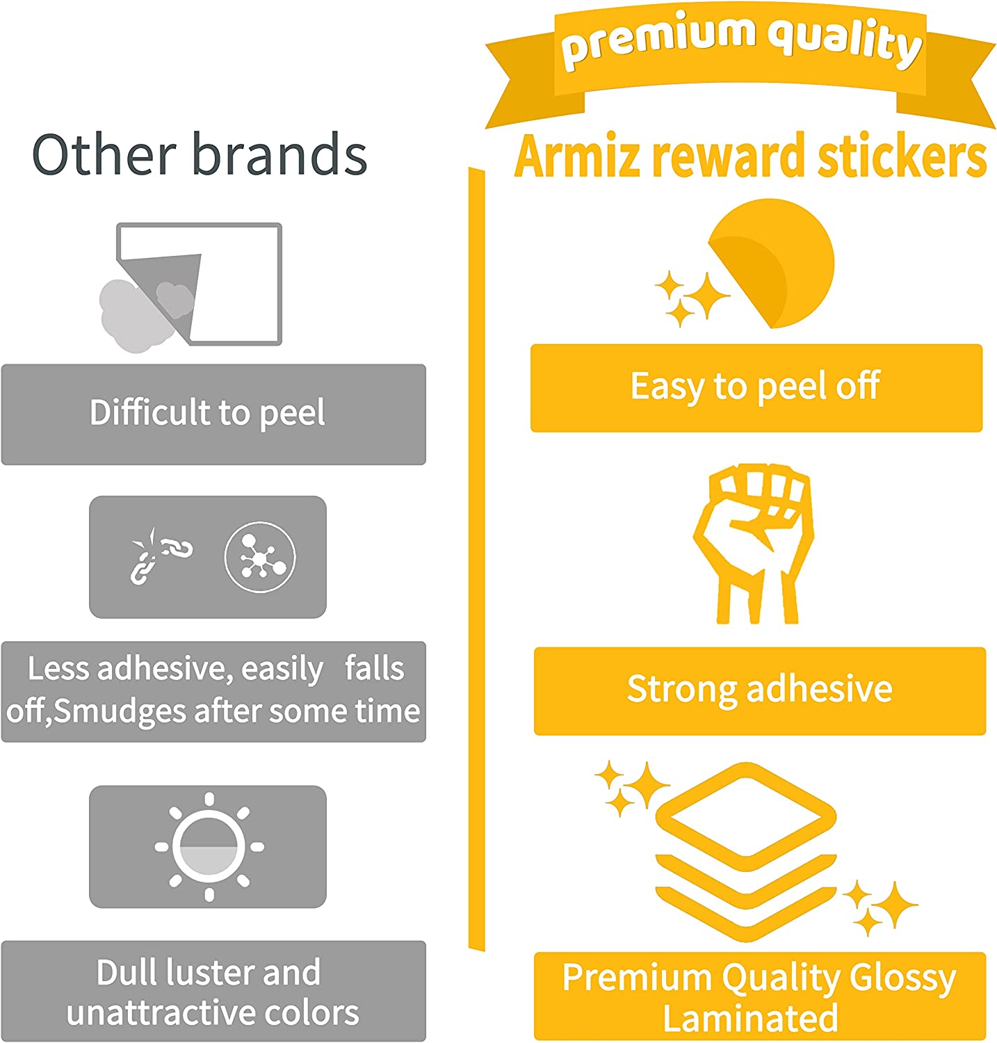 - 【 Material 】- Our well done stickers for children are made of high-quality paper with brighter colors having gloss laminated finishing. ARMIZ uses super strong adhesive glue which ensures they will stick to paper, chart & clothes without falling off